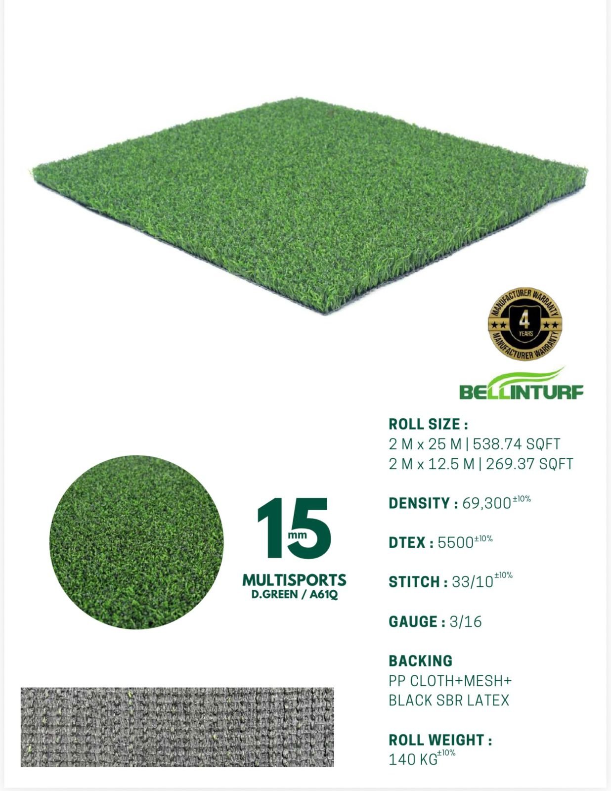 Experience unmatched performance with 15mm Multisports Turf from Evergreen Turf & Plants, your trusted source for premium artificial sports grass in Noida. Designed for multi-purpose sports applications, this turf is perfect for football, cricket, hockey, volleyball, and training arenas. Made from high-quality synthetic fibers, our 15mm turf ensures excellent grip, smooth ball roll, and superior cushioning to prevent injuries and enhance play comfort. It offers all-weather durability, maintaining its lush green look throughout the year—no watering, mowing, or mud hassles. This turf is widely used in schools, clubs, gyms, sports academies, and indoor arenas, making it a cost-effective and long-lasting sports flooring solution.