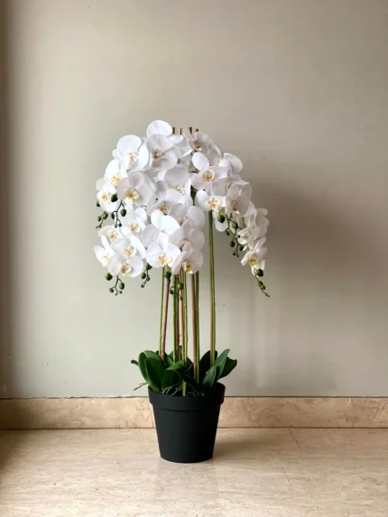 Artificial White Orchid Bloom Plant – 3 Feet